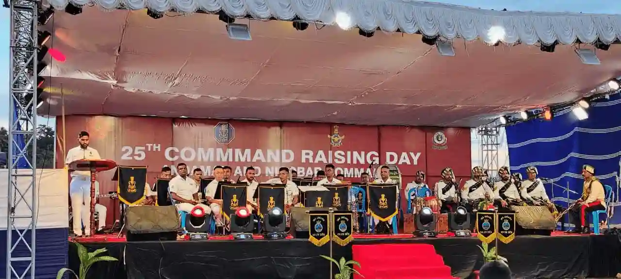 Port Blair, Andaman and Nicobar Island, October 10, 2025: The Andaman and Nicobar Command (ANC) — India’s only Tri-Service Command — celebrated its 25th Command Raising Day with great pride and patriotic fervour at Marina Park, Port Blair. Marking the silver jubilee occasion, a Gala Musical Evening was organized, featuring mesmerizing performances by the Tri-Service Band comprising personnel from the Indian Army, Navy, and Air Force.