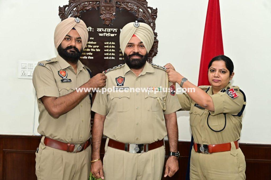 Bathinda, Punjab: In a ceremonial event held at the Bathinda Police Office, Senior Superintendent of Police (SSP) Bathinda, along with SP (Investigation), formally conferred promotions to Inspector Jagdeep Singh and Inspector Jaskaran Singh by adorning them with stars on their shoulders.