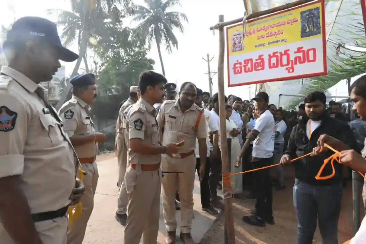 Srikakulam, Andhra Pradesh: On the occasion of Rathasaptami celebrations at the Arasavalli Sri Suryanarayana Swamy Temple, the district police ensured fast, peaceful, and hassle-free darshan for devotees who arrived in large numbers. With meticulous planning and strong police arrangements, devotees were able to have darshan without any hindrance.