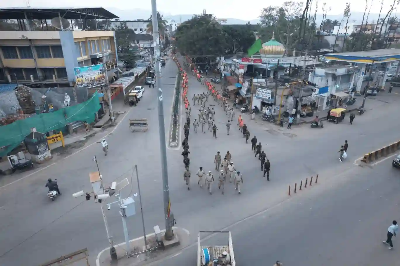 Chikkamagaluru City, Karnataka: In view of the upcoming protest organized by the Hindu Hitarakshana Vedike on October 15, 2025, the Chikkamagaluru City Police conducted a route march across key areas of the city to demonstrate their readiness and commitment to maintaining law and order.