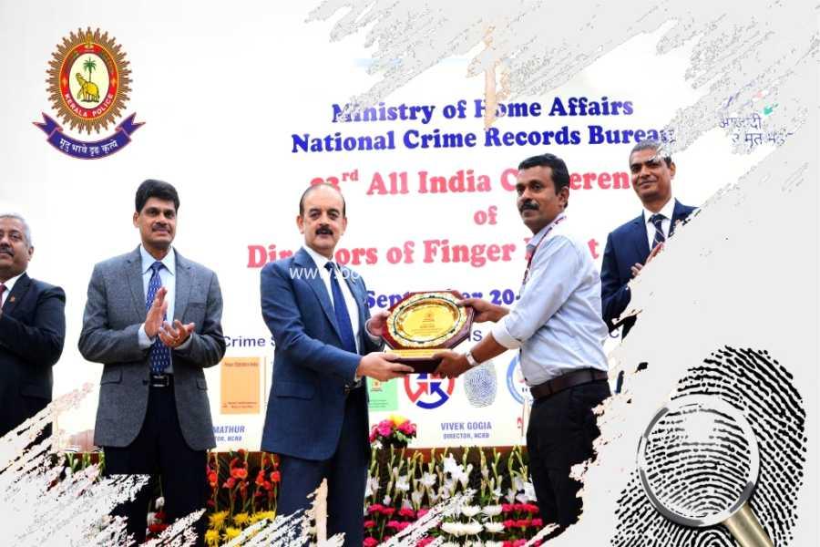 Fingerprint expert Mr. Ajitji and Tester Inspector Mr. Jayan.K received the award from National Crime Records Bureau Director Vivek Gogia at a ceremony held in New Delhi. The competitions were organized on the occasion of the 23rd National Conference of Fingerprint Bureau Directors.